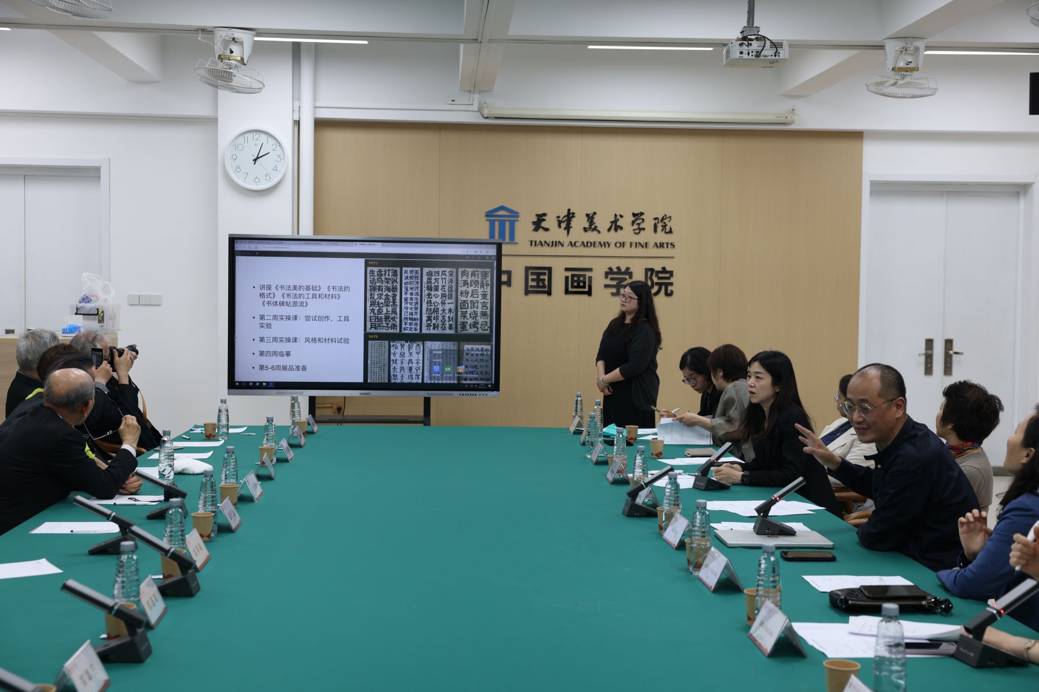 学校党委副书记、院长邱志杰教授代表beat365在线唯一官网登录热情接待了来访嘉宾。日方代表团由日本书法院理事长星弘道、全日本书法联盟副理事长辻元洋一、日中文化交流协会专务理事中野晓、日本书法院副理事长山内香鹤、武藏野大学教育学部教授广濑裕之、日本书法院常任理事小林千早共6位书法界艺术家及学者组成;韩方代表团包括韩国书法协会会长金荣基、国际书法家协会会长郑道准、国际书法家协会副会长郑雄杓、国际书法协会事务次长孙昌洛、PHILMUK公司代表金钟键、韩国篆刻协会会长崔载锡、韩日文化交流会议职员朴俞真共7位书法界艺术家及知名人士组成。全国对外友协东亚部二级巡视员郭宁、天津市对外友协副会长黄春艳等陪同访问,beat365官网国际交流处、中国画学院、津美融合创新研究院相关负责人出席会见。