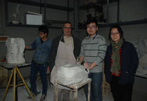 德国雕塑家乔治· 阿伦斯于20141020日到117日来访我院,在我院雕塑系给研究生同学上课。阿伦斯教授的教学是由现代抽象雕塑的发展脉络而来,是将抽象化了的“实物”抽离出了具象的元素。其作品是从具象题材出发,到抽象形态,再到具象元素的循环。正如他眼中的“天使”不是唯美的仙女,而是一种精神的概括与提炼,是拥有无限力量的体块,是雕刻着偶发肌底的抽象“实物”。