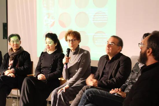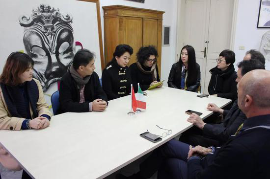 文化部部长Antonella Aguoli女士(左二)携当地艺术家与代表团讨论交流