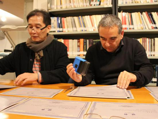 西吉斯蒙德省立博物馆馆长Luigi De Luca先生(右一)为参展艺术家签发证书