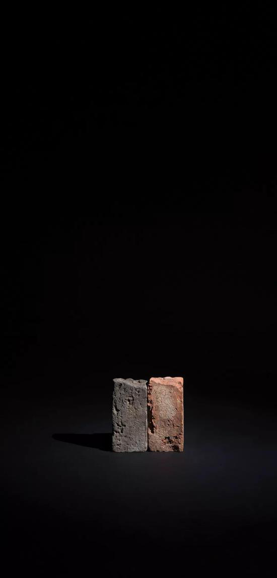 这两块来自不同时期同一建筑上的砖,一对一,一和一,一加一……折射出的样貌,恰如人之生存,人同物,无时无刻不在差异、对抗和困顿中寻求支撑和存在。