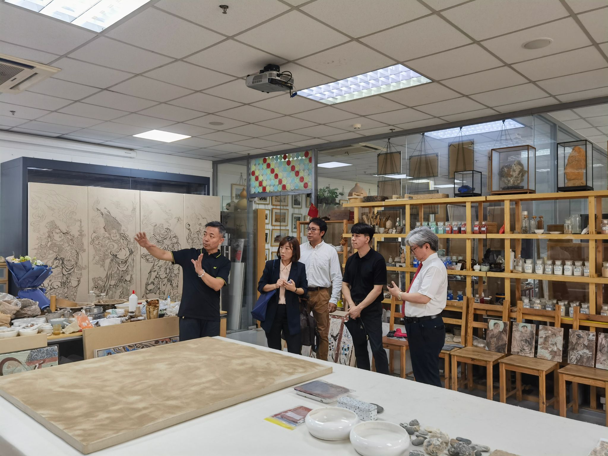 中国画学院副院长赵栗晖介绍中国画实验室