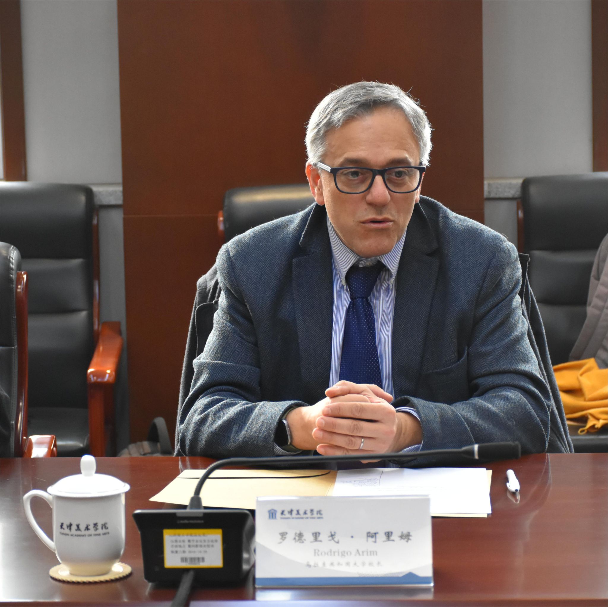 近日,乌拉圭驻华使馆以及乌拉圭共和国大学校长罗德里戈 · 阿里姆 (Rodrigo Arim)代表团一行9人到访beat365在线唯一官网登录,天津市外办相关负责同志陪同访问。副院长寇疆晖会见来宾,国际艺术教育学院院长李通、中国画学院副院长赵栗晖以及国际交流处相关同志参加了会见。