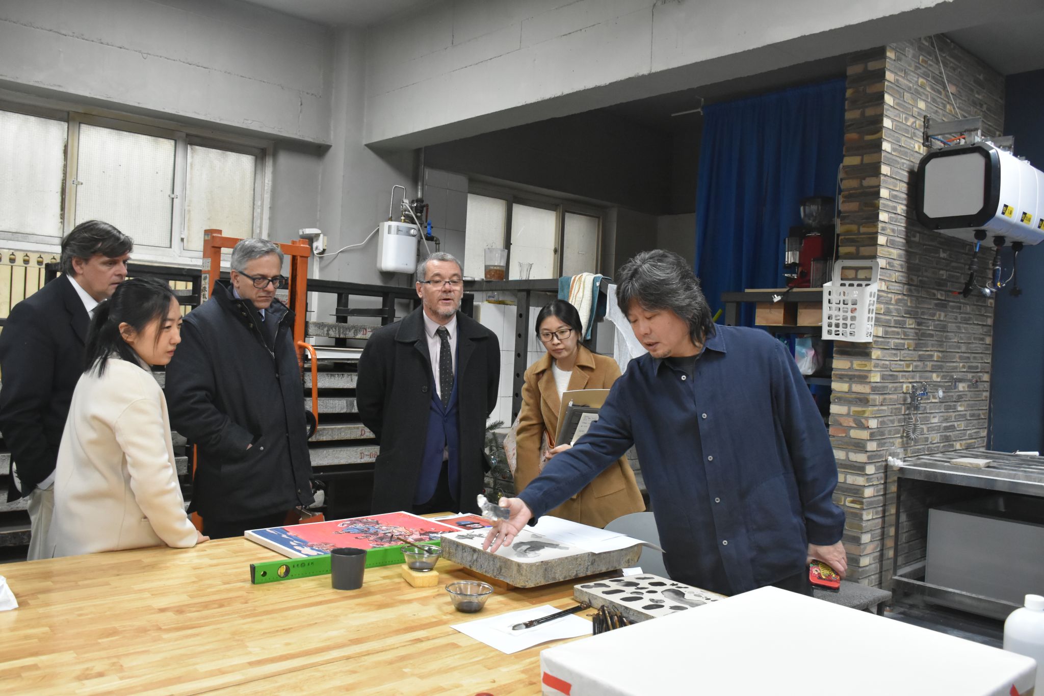 代表团参观版画实验室