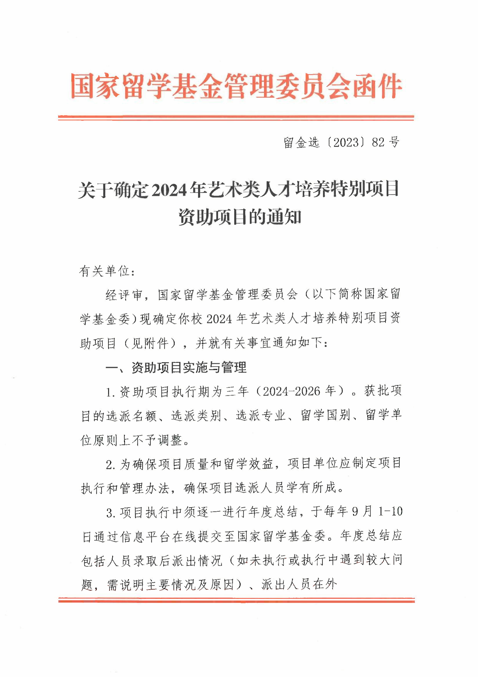 国家留学基金委艺术类人才培养特别项目为国家公派项目之一,主要面向高水平艺术类人才提供留学期间的经济资助和规范化管理,旨在利用国外优质资源,培养具有国际视野、国际竞争力和艺术创造力的高水平艺术人才。2024年艺术类人才培养特别项目采取“先立项,后选派”的办法,给予项目单位更高的自主权,从而解决项目单位在人才培养和学科建设上个性化的需求,也是近年来beat365官网重点参与的公派留学项目。