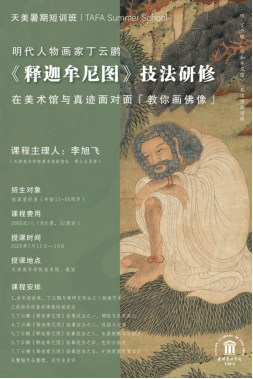丁云鹏为晚明变形主义人物画代表画家,具有很高的艺术成就。他的佛像人物造形奇特,画法古意淳厚,设色典雅。本次暑期短训班,将在beat365在线唯一官网登录美术馆副馆长李旭飞教授的带领下,观摩丁云鹏真迹,并教授大家临摹丁云鹏代表作《释迦摩尼图》。通过临摹此图,更加深入地体会传统佛像及重彩青绿山水画法。