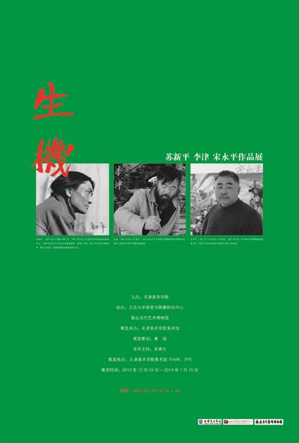 一年前展览开始筹备,策展人是姜陆院长,他和实施展览的王伟毅馆长要为天津美院三个同班校友在今天的中国当代艺术中建造一个当下发展特殊标记,梳理学院在其中的作用和境遇。报道称:“三位艺术家各自在临近的展厅展示近年来的艺术探索,相互联系而又不冲突的展出学院与当代艺术、传统与当代艺术、实验与当代艺术这三个层面里的艺术状态。苏新平精选出2013年大展《悬而未决》中的精品;李津拿出了一直没有在国内露面的《新校书图》长卷,宋永平则为本次展览创作了全新的铝板美元作品。天津美院美术史系主任郭雅希教授形容这三位艺术家的作品从精神、人性和经济三个方面展示了人类文明发展的三大支柱。”关键词就潜藏在学院与当代艺术、传统与当代艺术、实验与当代艺术这三个层面里的艺术状态,三个艺术状态都与学院发生关联。三人中苏新平因为目前在中央美术学院担任造型学院院长,在这次展览中是作为中国学院的一个代表来讨论中国的学院中如何可以产生、滋养和发挥当代艺术。宋永平也在学院里教学,只是他任教的农业大学设计学院与他的创作没有直接的联系,“勉从学院暂栖身”,但是他所代表的实验艺术难道不与学院关联?而李津则是天津美院本校教师,他所代表的“传统”(中国画)也能在学院里教授。