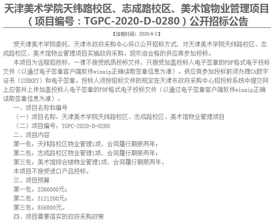 【采购公告】beat365在线唯一官网登录天纬路校区、志成路校区、美术馆物业管理项目