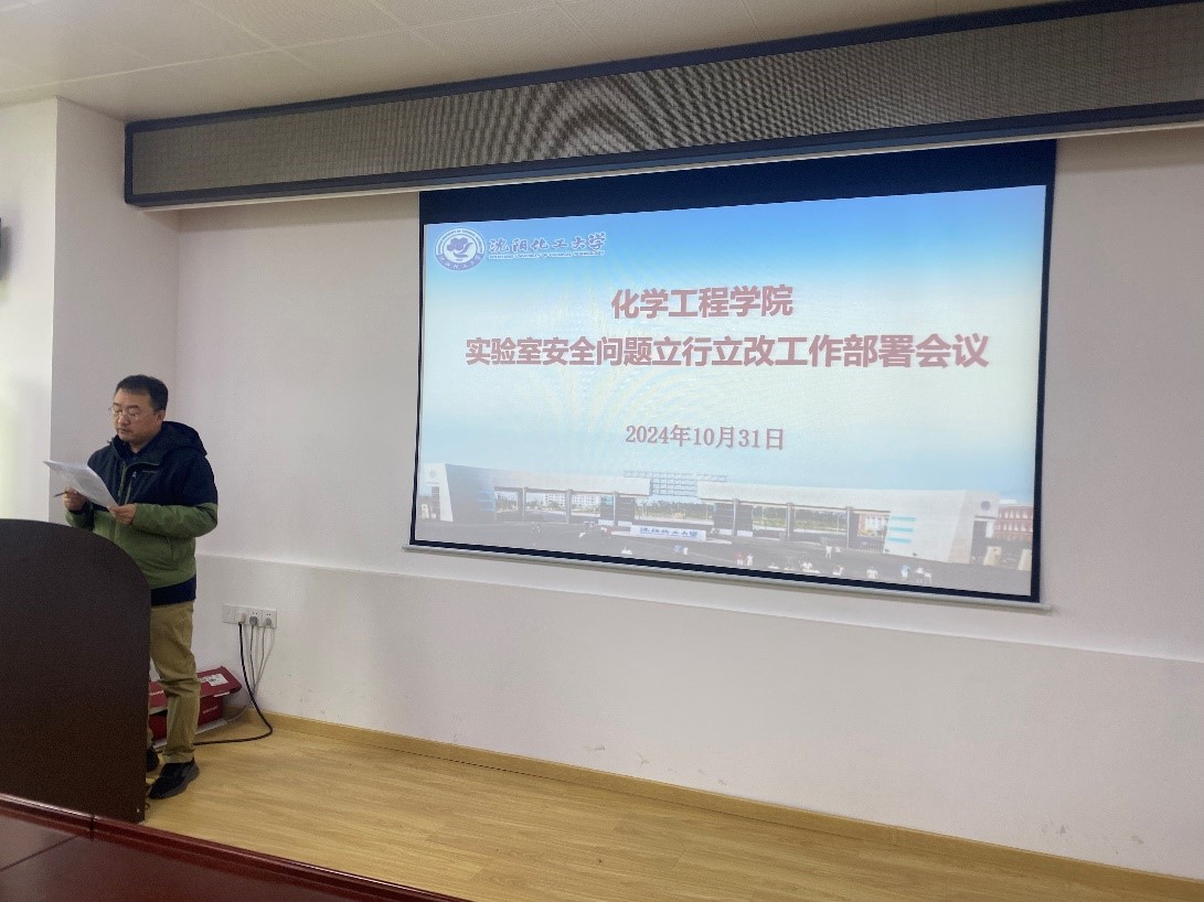 为深入贯彻落实省委第六巡视组对学校化学药品管理以及化学实验室日常管理等方面所反馈的意见建议,确保巡视整改工作取得实效,尽快执行关于落实《巡视期间立行立改问题移交表》(编号:001)相关问题的整改通知,我院于10月31日召开全院大会,对第十三届省委第六轮巡视组所反馈的实验室安全问题立行立改工作进行部署。会议由王康军院长主持,各实验室负责人参加。