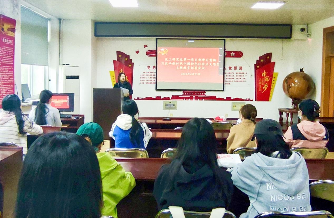 4月23日中午,化工学院研究生第一党支部在稚川楼310召开党员大会,传达学校学习贯彻习近平新时代中国特色社会主义思想主题教育工作会议精神和我校主题教育工作部署会要求,结合工作实际对落实学校主题教育实施方案进行再部署、再动员。支部全体党员以线上线下相结合的形式参加会议,会议由支部书记李昱主持。