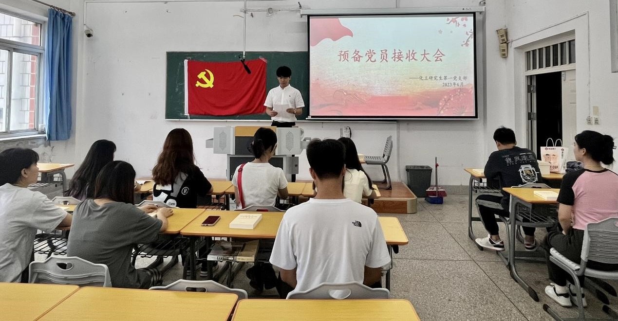 化工学院研究生第一党支部于619日在瑞师楼109召开了预备党员接收大会,大会由支部书记李昱同志主持,党支部全体党员、发展对象参加会议。