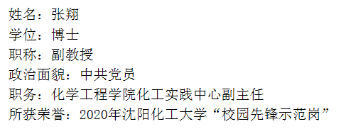 张翔同志是BEAT365英国官网化工实践中心副主任,一名普通的共产党员,他在平凡的工作中,一丝不苟,默默奉献,受到院校领导和老师以及同学们的赞许和喜爱。多次获院先进个人,优秀共产党员。